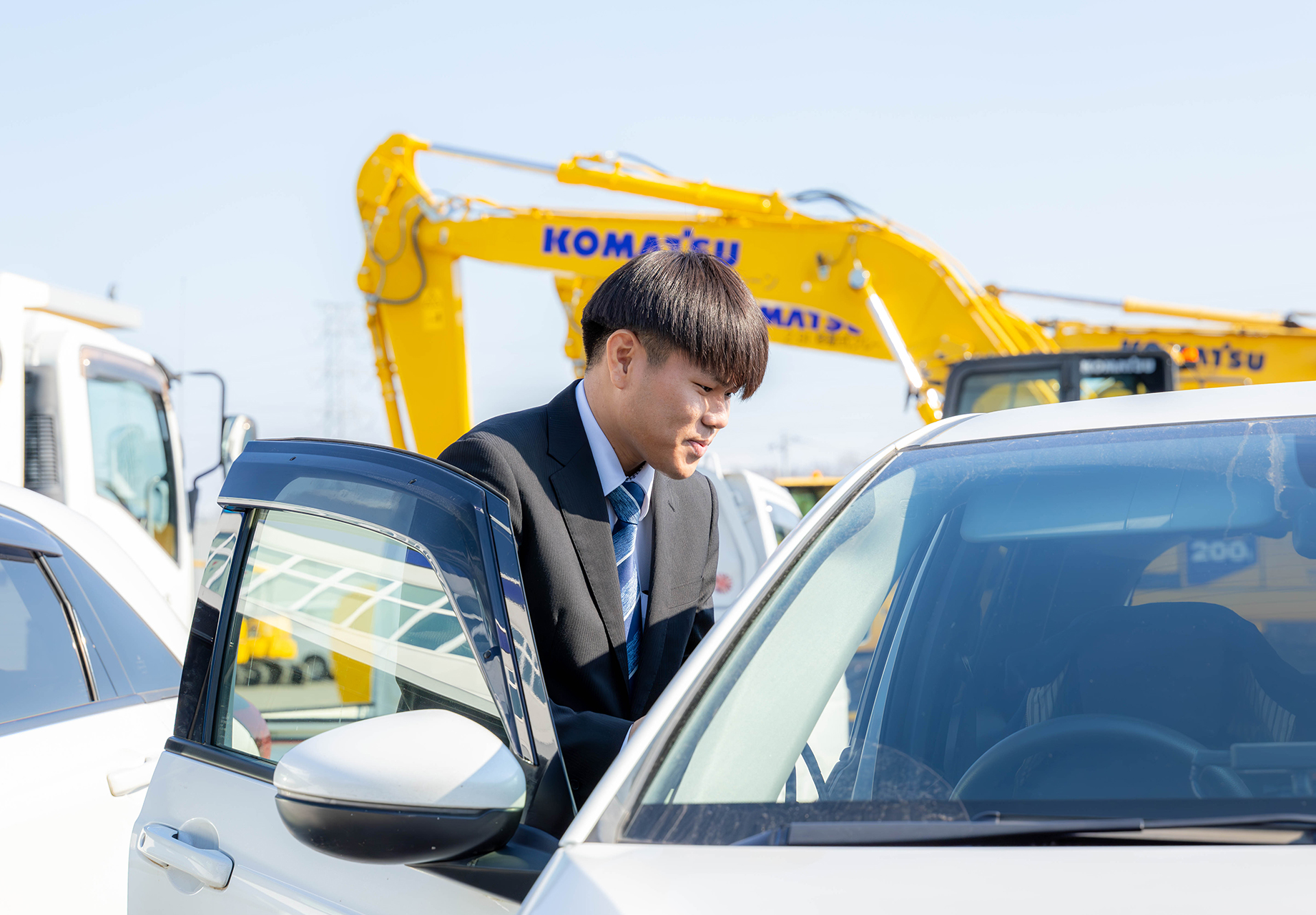 私は栃木県の出身で、大学卒業後にコマツ栃木へ新卒入社しました。幼い頃から車や機械が好きで、特に建設機械にも興味がありました。そのため、販売に関わる仕事に就きたいと考え、コマツ栃木への入社を決めました。もともと作業系の仕事にも興味はありましたが、趣味として楽しみたいという思いが強く、営業職を選びました。実は話すことがあまり得意ではなかったため、営業の仕事を通じてコミュニケーションスキルを磨きたいという気持ちもありました。